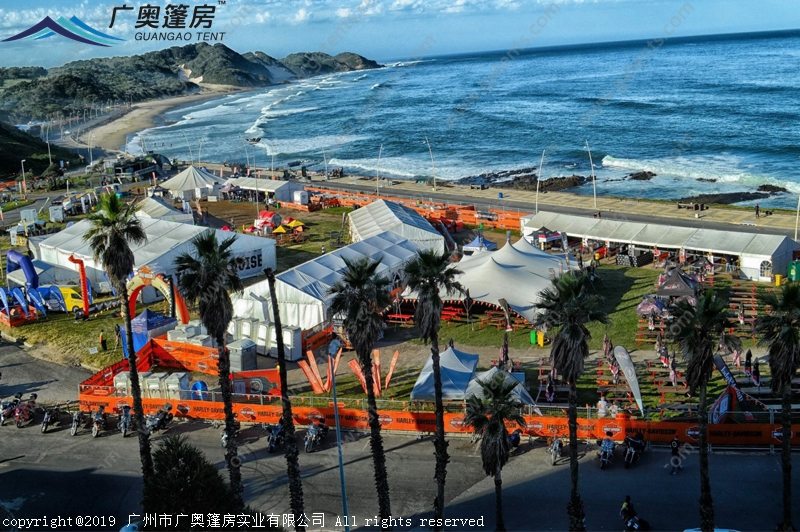 廣奧為南非東倫敦大型戶外派對(duì)專設(shè)計(jì)了組裝型套裝篷房,有幾個(gè)是一體墻板的篷房,實(shí)施了拼合技術(shù)拼接而成。主材料包含了優(yōu)質(zhì)PVC篷布、ABS墻體,高強(qiáng)度鋁合金,以及其他鋼部件連接固定。